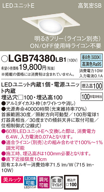 Panasonic ¥À¥¦¥ó¥é¥¤¥È LGB74380LB1