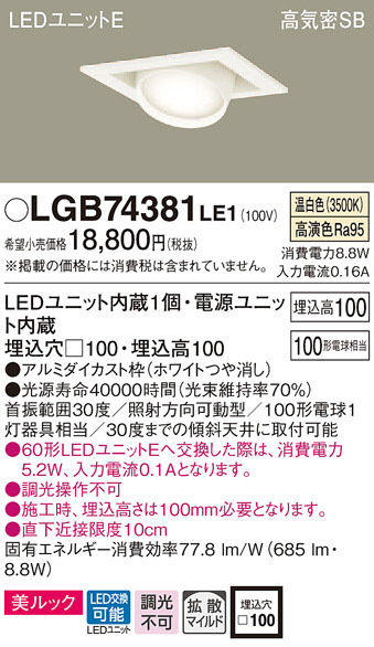 Panasonic ¥À¥¦¥ó¥é¥¤¥È LGB74381LE1