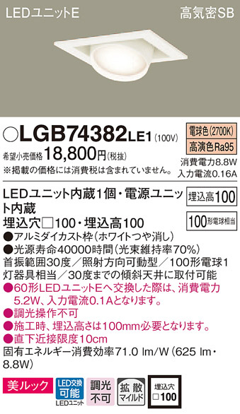 Panasonic ¥À¥¦¥ó¥é¥¤¥È LGB74382LE1
