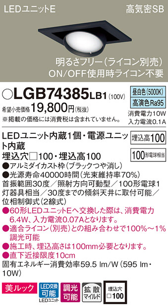 Panasonic ¥À¥¦¥ó¥é¥¤¥È LGB74385LB1