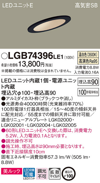 Panasonic ¥À¥¦¥ó¥é¥¤¥È LGB74396LE1