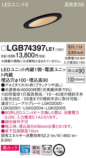 Panasonic ¥À¥¦¥ó¥é¥¤¥È LGB74397LE1