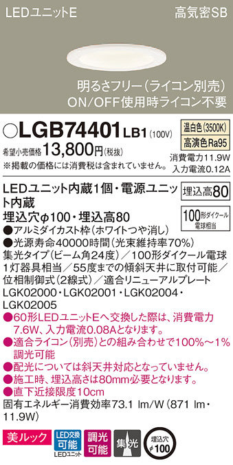 Panasonic ¥À¥¦¥ó¥é¥¤¥È LGB74401LB1