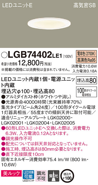 Panasonic ¥À¥¦¥ó¥é¥¤¥È LGB74402LE1