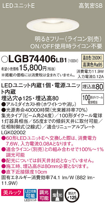 Panasonic ¥À¥¦¥ó¥é¥¤¥È LGB74406LB1