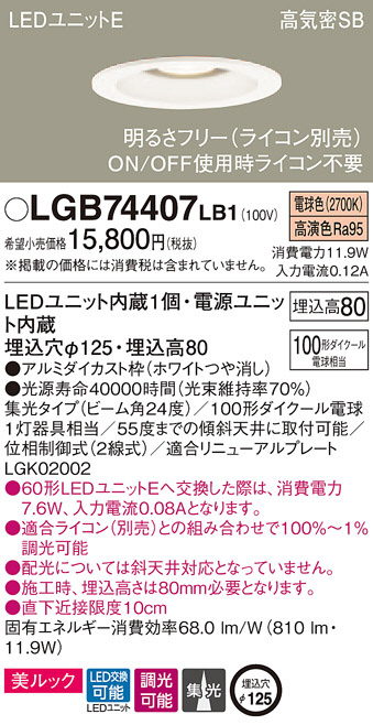 Panasonic ¥À¥¦¥ó¥é¥¤¥È LGB74407LB1