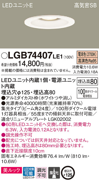 Panasonic ¥À¥¦¥ó¥é¥¤¥È LGB74407LE1