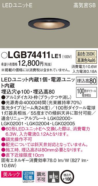Panasonic ¥À¥¦¥ó¥é¥¤¥È LGB74411LE1