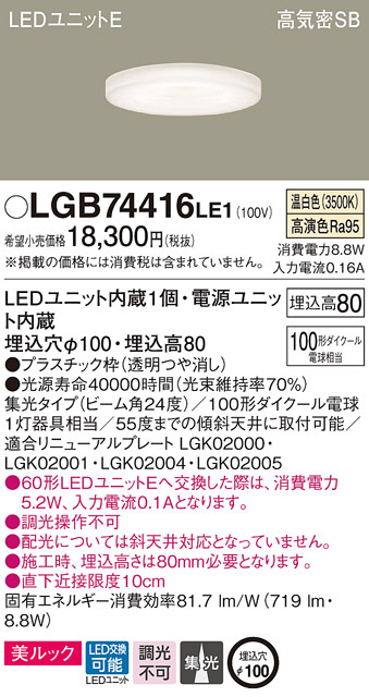 Panasonic ¥À¥¦¥ó¥é¥¤¥È LGB74416LE1