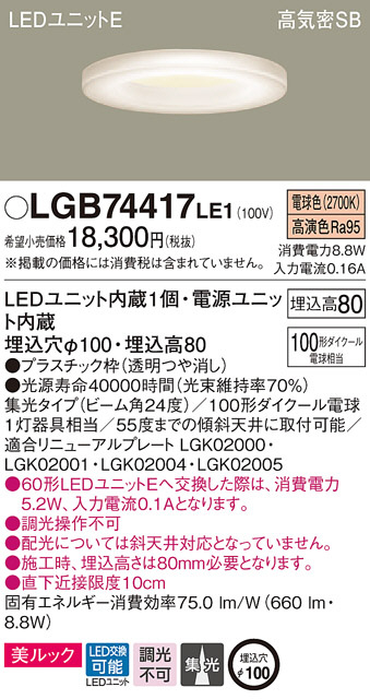 Panasonic ¥À¥¦¥ó¥é¥¤¥È LGB74417LE1