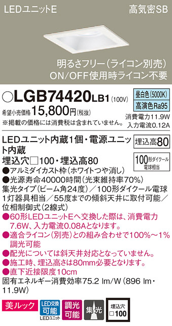 Panasonic ¥À¥¦¥ó¥é¥¤¥È LGB74420LB1
