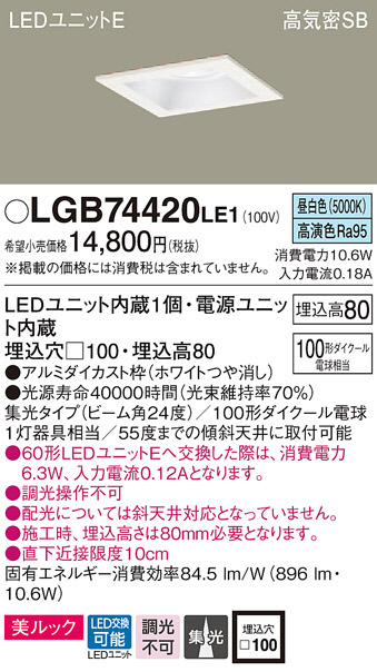 Panasonic ¥À¥¦¥ó¥é¥¤¥È LGB74420LE1