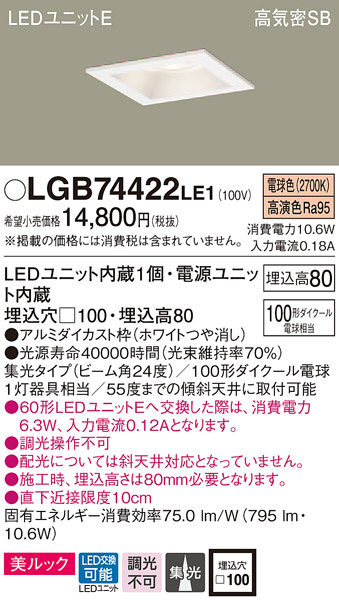 Panasonic ¥À¥¦¥ó¥é¥¤¥È LGB74422LE1