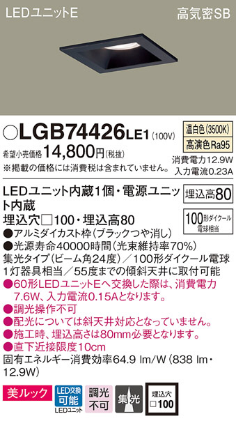 Panasonic LED ¥À¥¦¥ó¥é¥¤¥È LGB74426LE1
