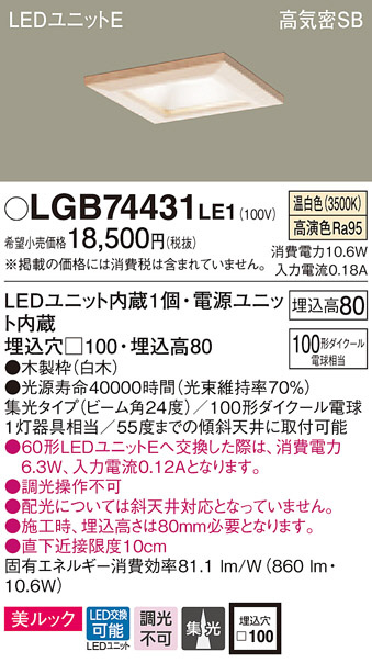 Panasonic ¥À¥¦¥ó¥é¥¤¥È LGB74431LE1