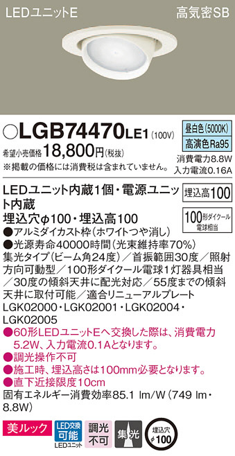 Panasonic ¥À¥¦¥ó¥é¥¤¥È LGB74470LE1