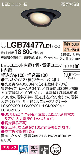 Panasonic ¥À¥¦¥ó¥é¥¤¥È LGB74477LE1