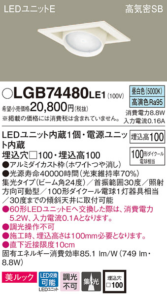 Panasonic ¥À¥¦¥ó¥é¥¤¥È LGB74480LE1