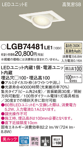 Panasonic ¥À¥¦¥ó¥é¥¤¥È LGB74481LE1