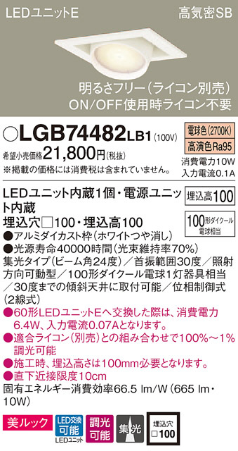 Panasonic ¥À¥¦¥ó¥é¥¤¥È LGB74482LB1