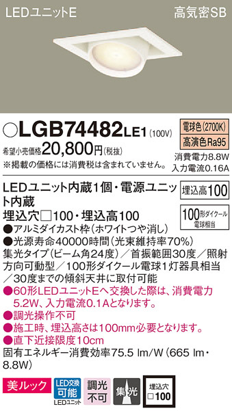 Panasonic ¥À¥¦¥ó¥é¥¤¥È LGB74482LE1