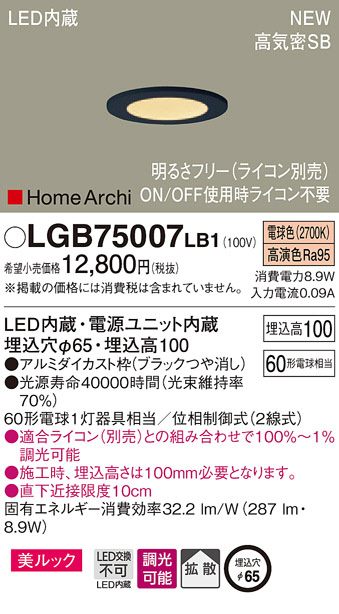 Panasonic ¥À¥¦¥ó¥é¥¤¥È LGB75007LB1
