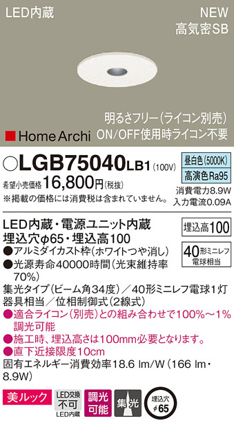 Panasonic ¥À¥¦¥ó¥é¥¤¥È LGB75040LB1