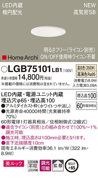 Panasonic ¥À¥¦¥ó¥é¥¤¥È LGB75101LB1