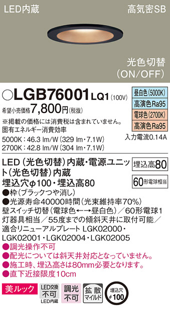 Panasonic ¥À¥¦¥ó¥é¥¤¥È LGB76001LQ1