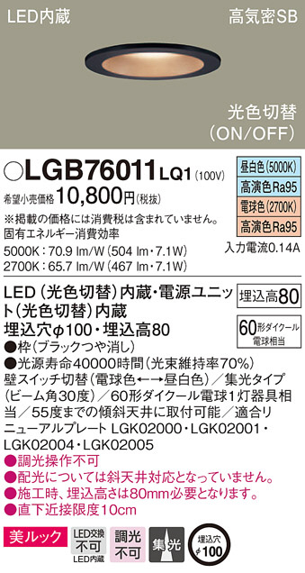 Panasonic ¥À¥¦¥ó¥é¥¤¥È LGB76011LQ1