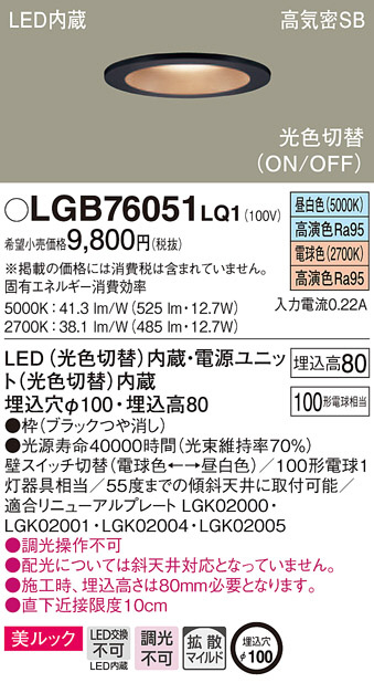 Panasonic ¥À¥¦¥ó¥é¥¤¥È LGB76051LQ1