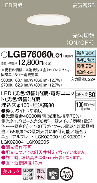 Panasonic ¥À¥¦¥ó¥é¥¤¥È LGB76060LQ1