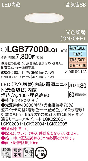 Panasonic ¥À¥¦¥ó¥é¥¤¥È LGB77000LQ1