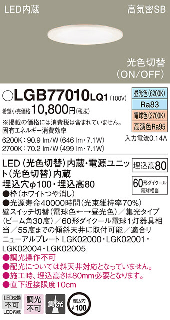 Panasonic ¥À¥¦¥ó¥é¥¤¥È LGB77010LQ1