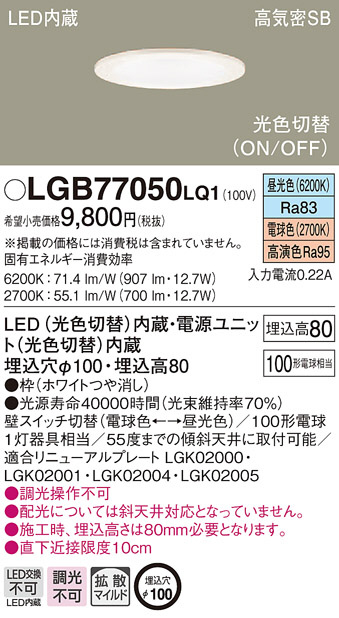 Panasonic ¥À¥¦¥ó¥é¥¤¥È LGB77050LQ1