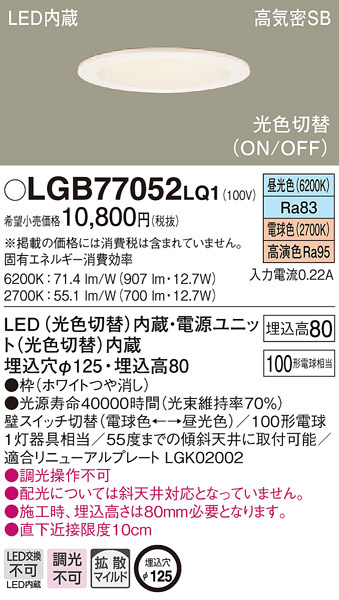 Panasonic ¥À¥¦¥ó¥é¥¤¥È LGB77052LQ1
