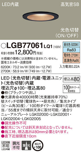 Panasonic ¥À¥¦¥ó¥é¥¤¥È LGB77061LQ1