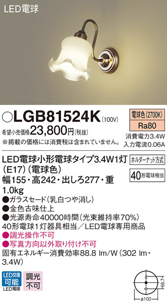 Panasonic LED ¥Ö¥é¥±¥Ã¥È LGB81524K