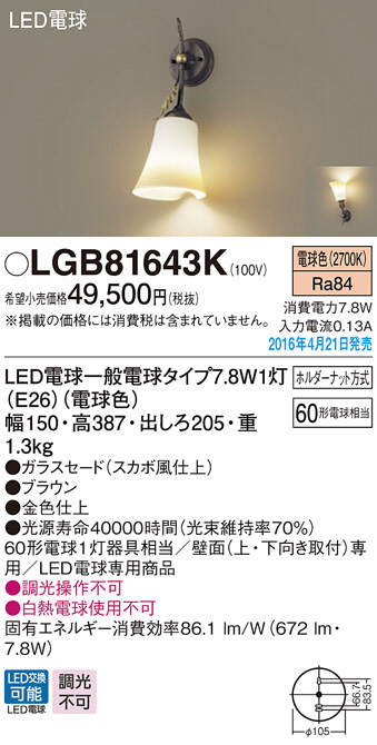 PANASONIC ¥Ñ¥Ê¥½¥Ë¥Ã¥¯ ¥Ö¥é¥±¥Ã¥È LGB81643K