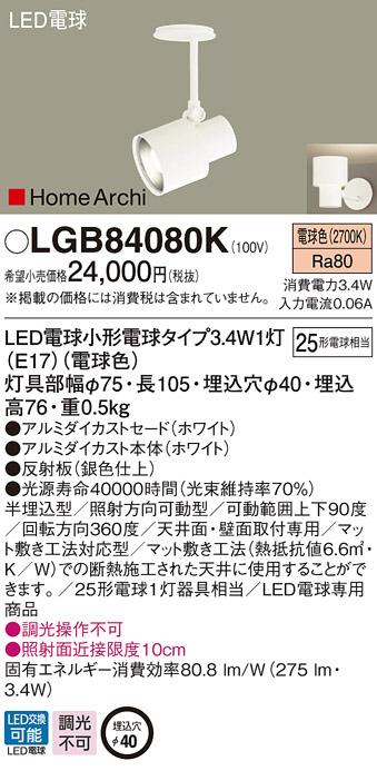 Panasonic LED ¥¹¥Ý¥Ã¥È¥é¥¤¥È LGB84080K