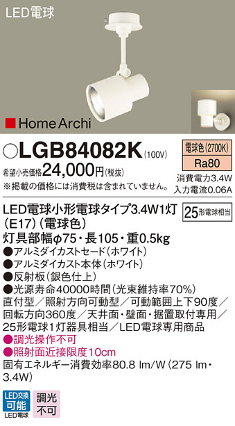 Panasonic LED ¥¹¥Ý¥Ã¥È¥é¥¤¥È LGB84082K