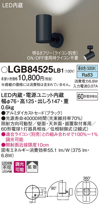 Panasonic LED ¥¹¥Ý¥Ã¥È¥é¥¤¥È LGB84525LB1