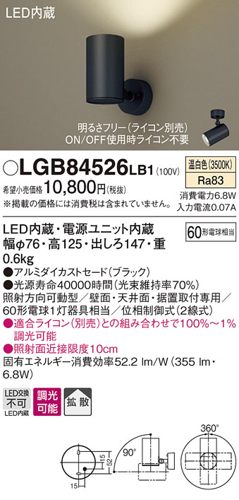 Panasonic LED ¥¹¥Ý¥Ã¥È¥é¥¤¥È LGB84526LB1
