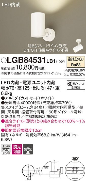 Panasonic LED ¥¹¥Ý¥Ã¥È¥é¥¤¥È LGB84531LB1