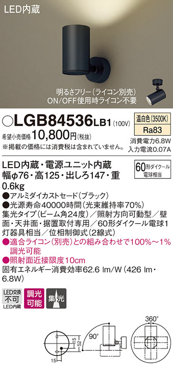 Panasonic LED ¥¹¥Ý¥Ã¥È¥é¥¤¥È LGB84536LB1
