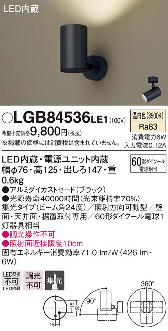 Panasonic LED ¥¹¥Ý¥Ã¥È¥é¥¤¥È LGB84536LE1