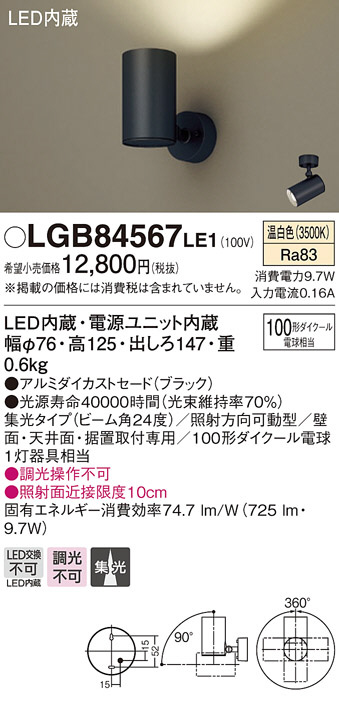 Panasonic LED ¥¹¥Ý¥Ã¥È¥é¥¤¥È LGB84567LE1
