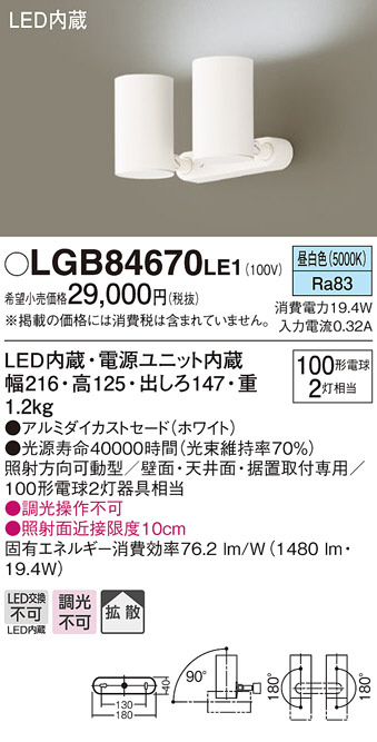 Panasonic LED ¥¹¥Ý¥Ã¥È¥é¥¤¥È LGB84670LE1