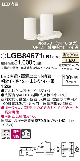 Panasonic LED ¥¹¥Ý¥Ã¥È¥é¥¤¥È LGB84671LB1