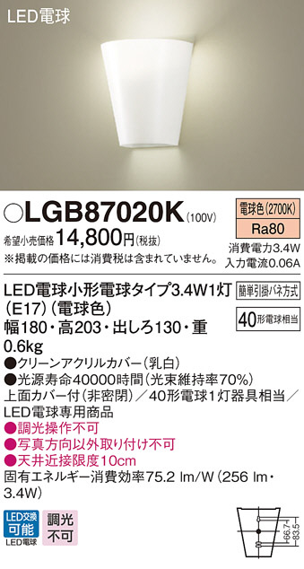 Panasonic LED ¥Ö¥é¥±¥Ã¥È LGB87020K